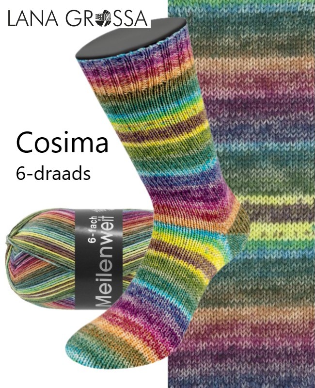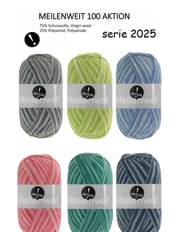 Meilenweit Aktion: een basic-garen van Meilenweit, maar wel met de vertrouwde kwaliteit. Dus net zo goed vormvast, hoog draagcomfort en gegarandeerd viltvrij. Voor dit prijsje is het zeker het proberen waard!?! Dit wolletje is zo vers van de pers, dat er nog geen sokfoto’s beschikbaar zijn. Dus laat je verrassen welk patroon er ontstaat uit deze kleurrijke bollen!