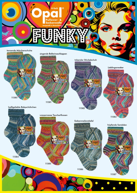 Wat een fantastische collectie: vol kleur en verschillende streepjes beloven dit hele vrolijke sokken te worden. Opal neemt ons mee naar een festival! Met welk kleurtje gaan jouw voetjes van de vloer…?