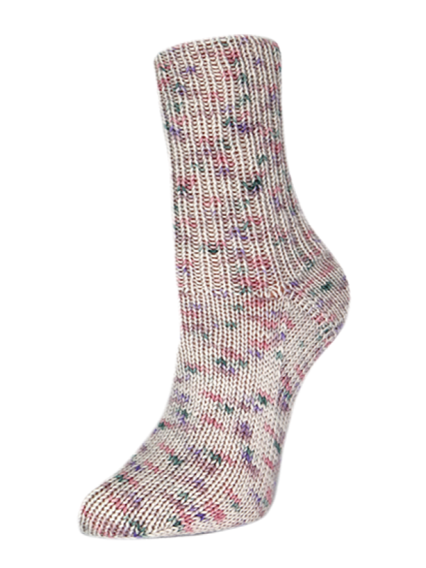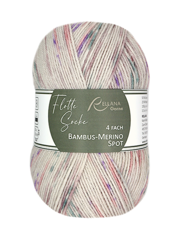 In dit bolletje vind je een subtiel stippen in pasteltinten. De combinatie van merinowol met bamboevezels zorgt voor zachte en warme sokken met een licht glanzende en chique uitstraling. Natuurlijk is dit bolletje ook heel geschikt voor andere doeleinden dan sokken. Denk aan een zachte, warme sjaal of (baby-) trui.
