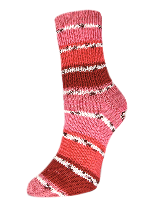 Rellana Flotte Socke Woolfree Celinda is een heerlijk zacht, vegan sokkengaren. Mooie heldere kleuren worden afgewisseld met een smal, contrasterend blokkenpatroon. Een hele fijne blikvanger voor onder je korte broek!