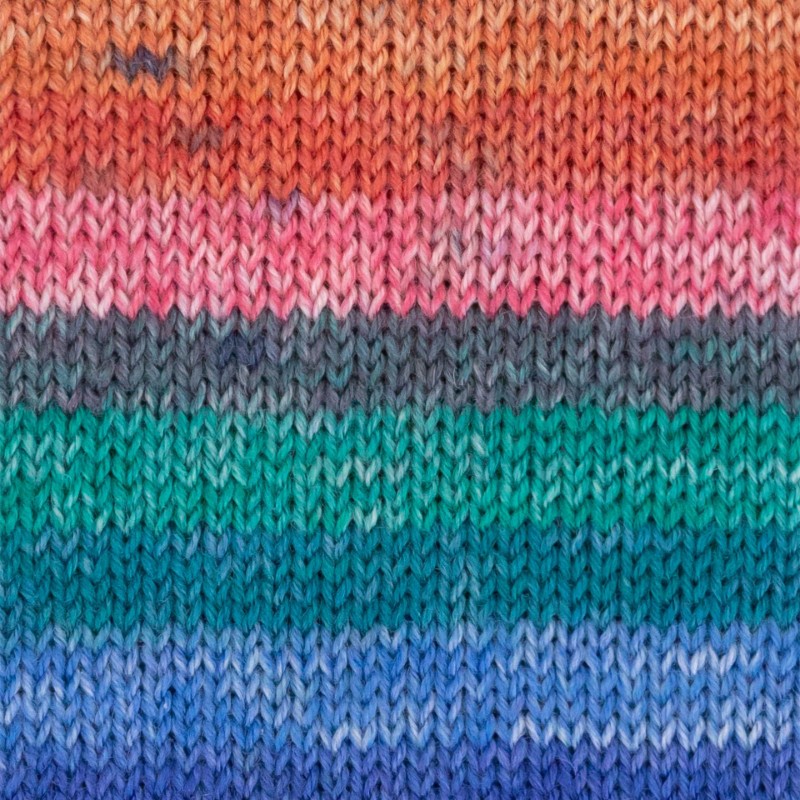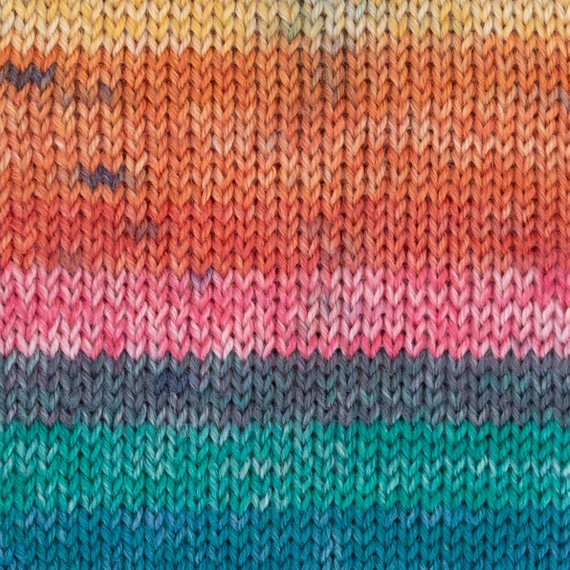 Streepjes in mooie, warme kleuren en met een zachte kleurovergang. Dit wolletje is ook heel leuk voor een vrolijke trui, sjaal of ander kledingstuk. Maar natuurlijk ook heel mooi voor een paar vrolijke streepsokken!