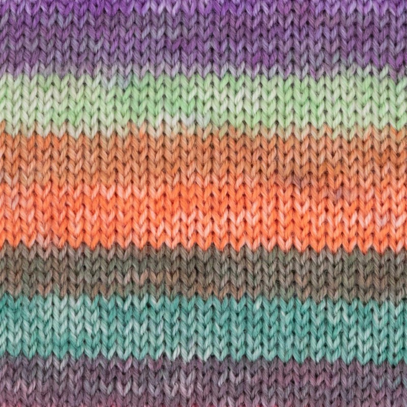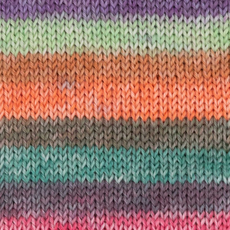 Streepjes in mooie, warme kleuren en met een zachte kleurovergang. Dit wolletje is ook heel leuk voor een vrolijke trui, sjaal of ander kledingstuk. Maar natuurlijk ook heel mooi voor een paar vrolijke streepsokken!