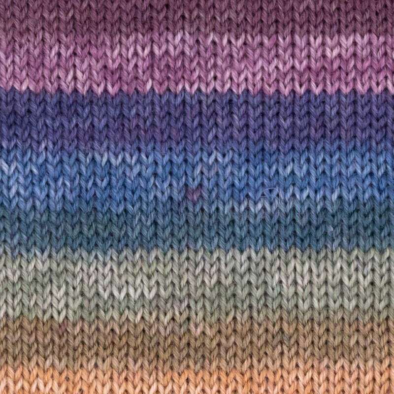 Streepjes in mooie, warme kleuren en met een zachte kleurovergang. Dit wolletje is ook heel leuk voor een vrolijke trui, sjaal of ander kledingstuk. Maar natuurlijk ook heel mooi voor een paar vrolijke streepsokken!