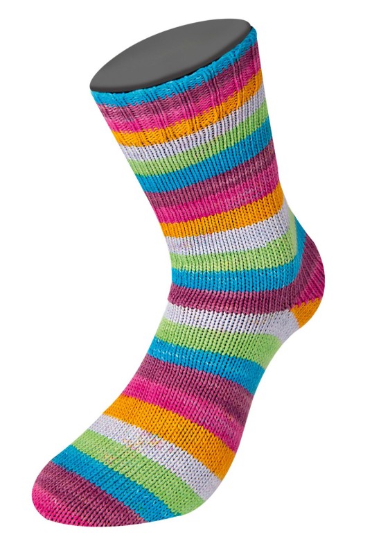 Strakke strepen in sprekende kleuren. Kortom een mooie streepsok voor aan je voeten. Ook heel geschikt voor kindersokken, al worden dan de strepen wel iets breder.