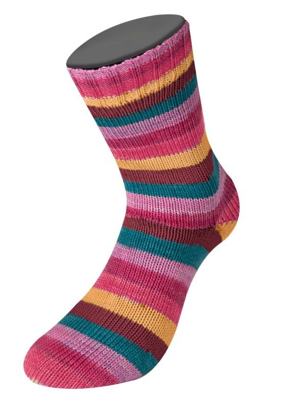 Strakke strepen in sprekende kleuren. Kortom een mooie streepsok voor aan je voeten. Ook heel geschikt voor kindersokken, al worden dan de strepen wel iets breder.