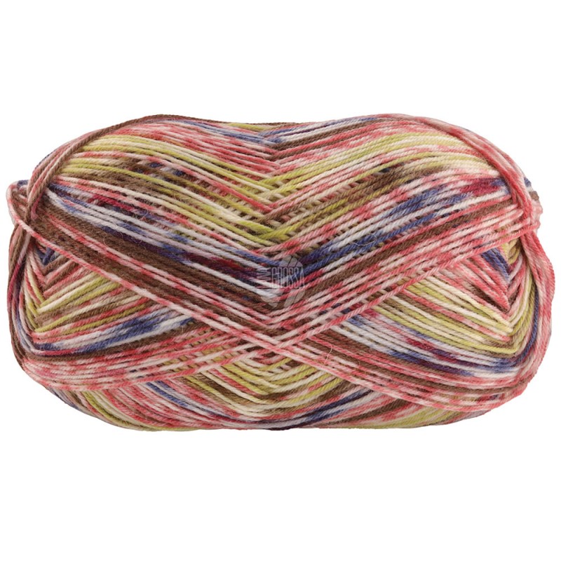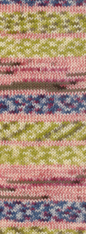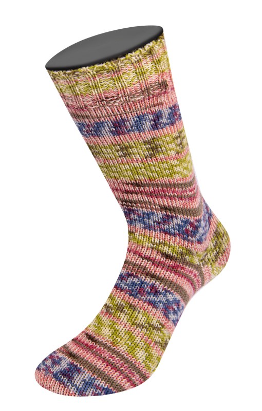 Vrolijkheid ten top in dit drukke printje! Een echte blikvanger voor aan je voeten of handen. En zo heerlijk zacht dat het een feestje wordt om te breien en te dragen.