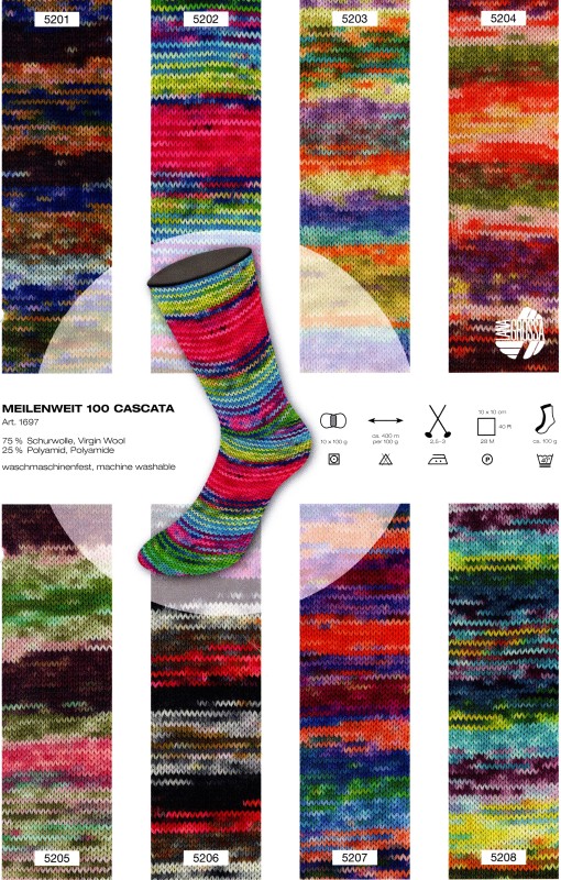 Meilenweit Cascata (handgeverfd merino), 4-draads