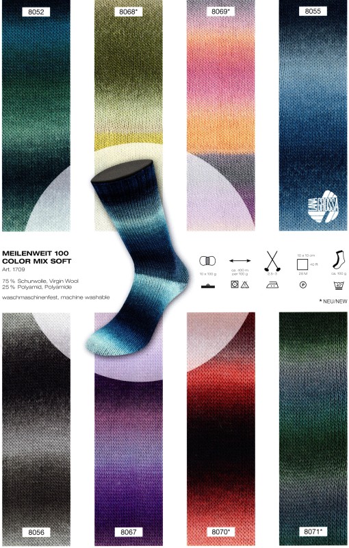 In deze merinowol verloopt de kleur continue van licht naar donker. Mooie kleurovergangen zorgen voor een fantastisch effect. De draad van Color Mix is minder getwijnd, waardoor het iets lastiger kan breien. Maar al jaren is de serie Color Mix heel geliefd voor een fijne sjaal of sokken.